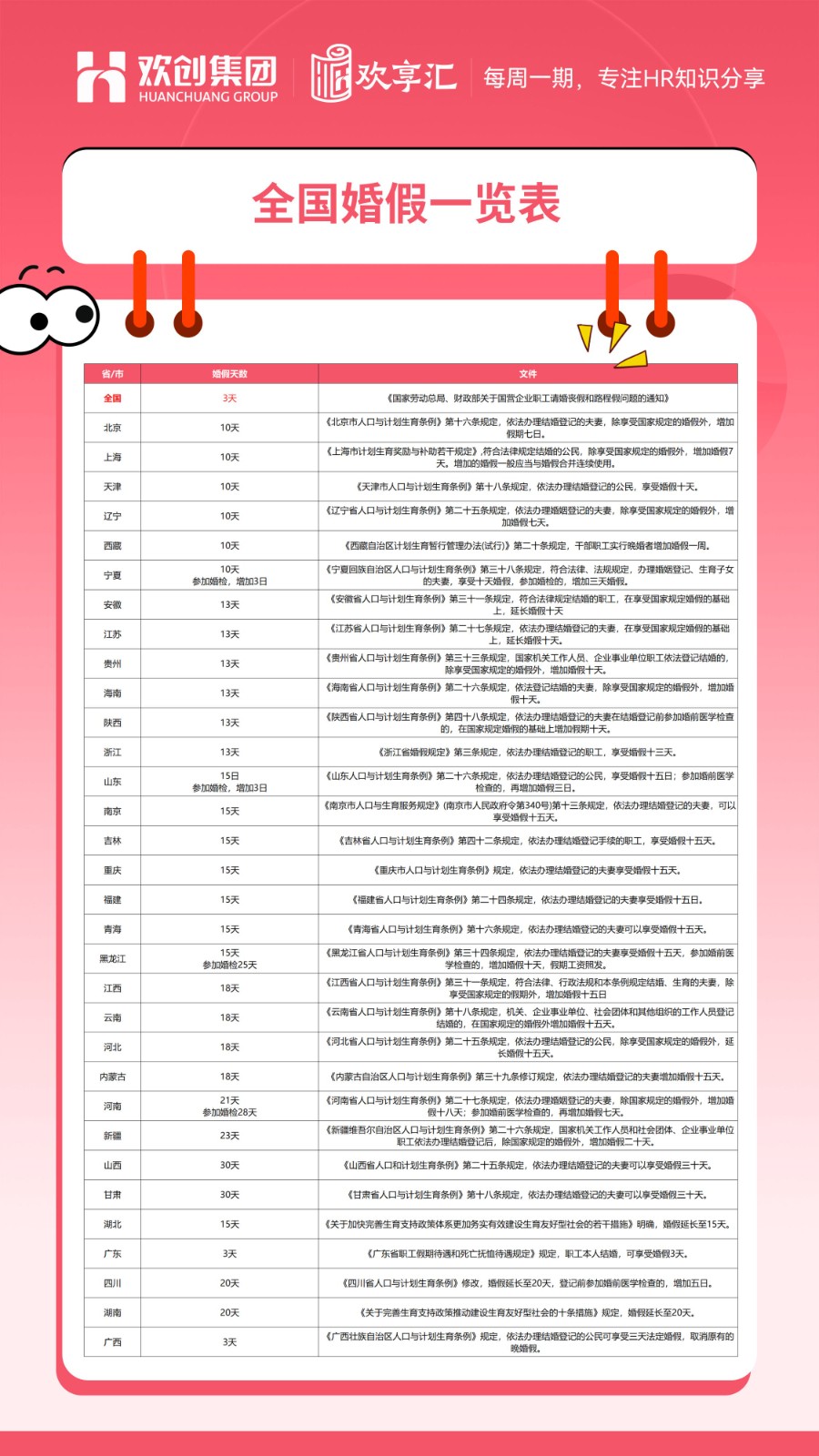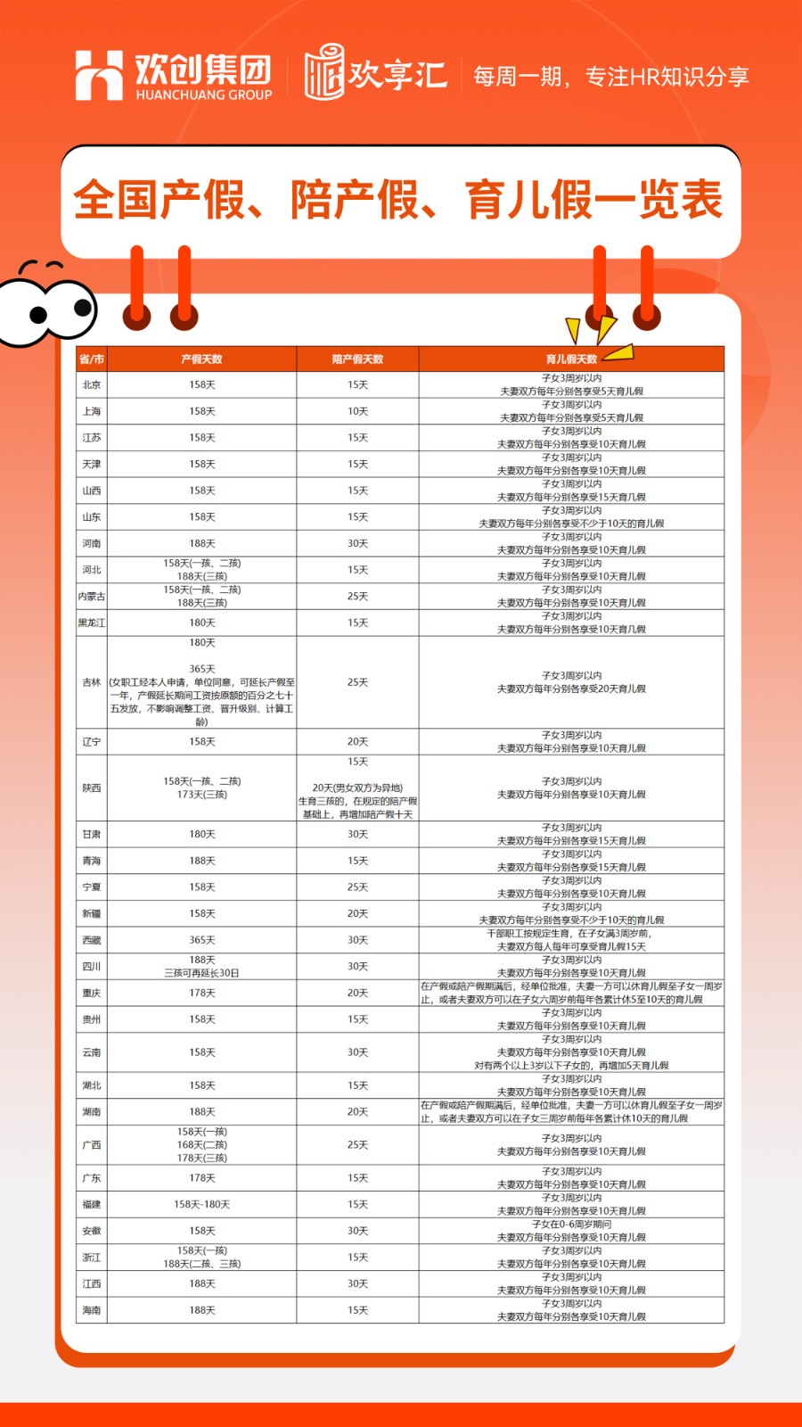 欢享汇 | 2026最新!全国31省婚假/产假/育儿假/独生子女假一览表